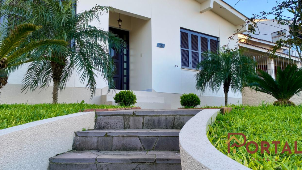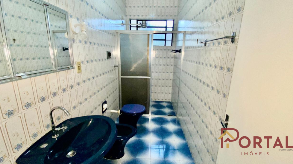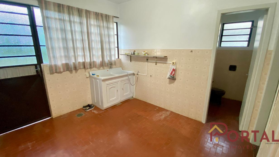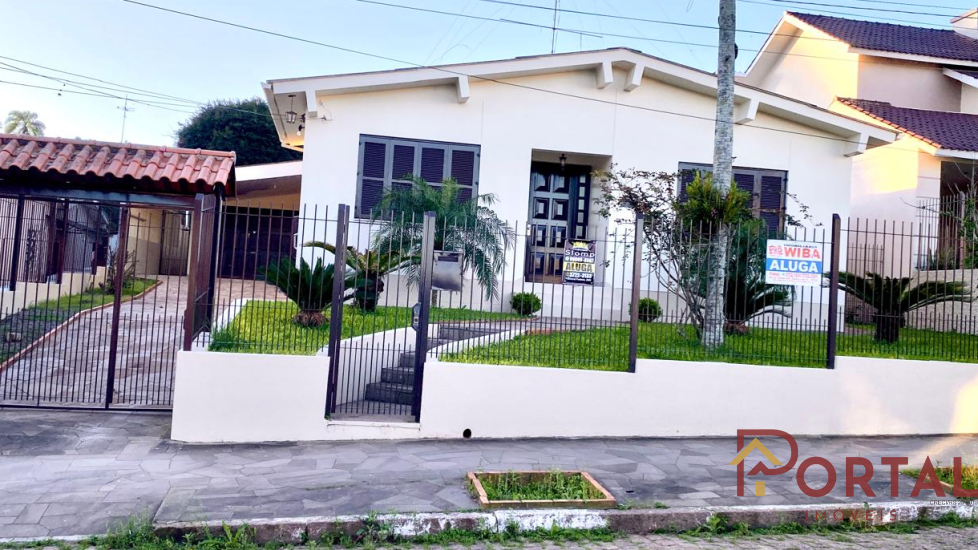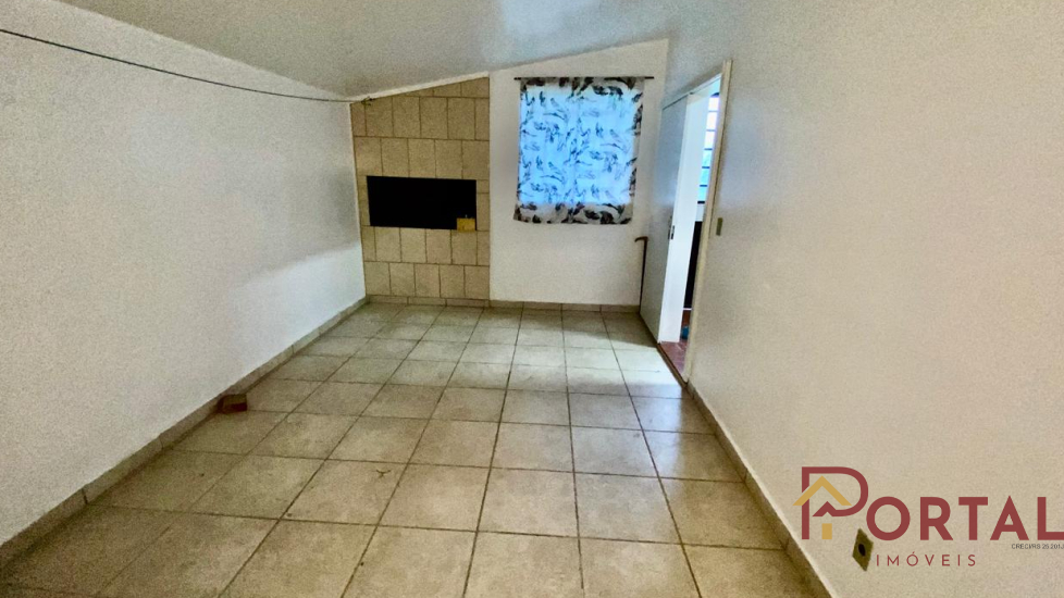 Casa com 3 dormitórios, sala, varanda, cozinha, 2 banheiros sociais, garagem, churrasqueira, e pátio.