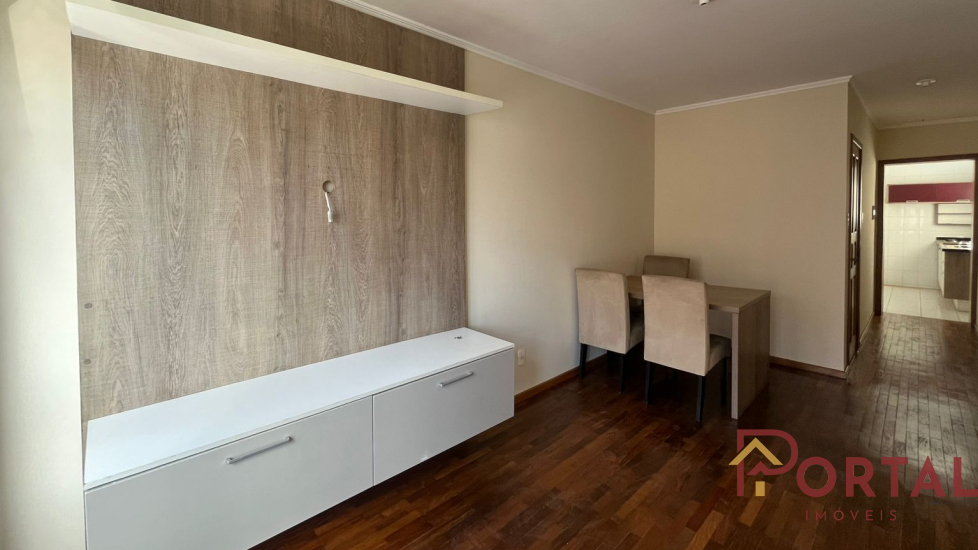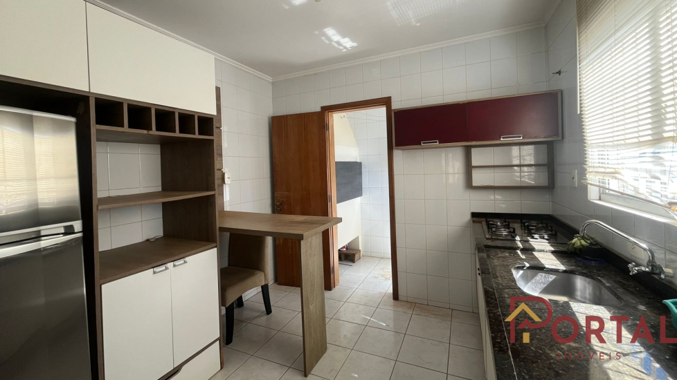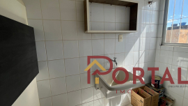 Apartamento semi mobiliado com 2 dormitórios, sala, cozinha, banheiro social, e área de serviço com churrasqueira