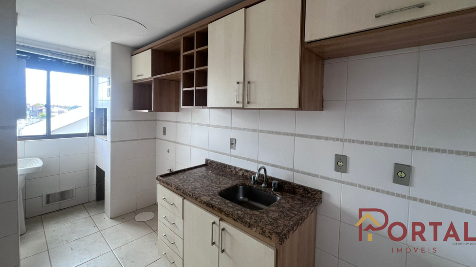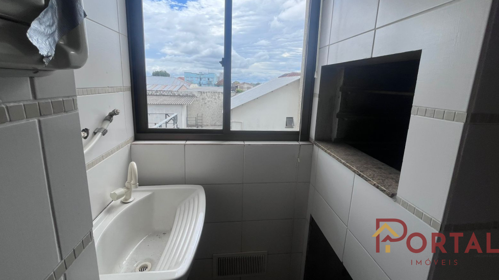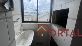 Apartamento com 2 dormitórios , sala com sacada, cozinha semi mobiliada, banheiro social, área de serviço, churrasqueira e garagem