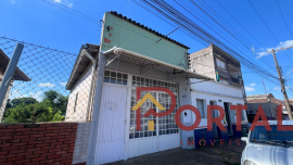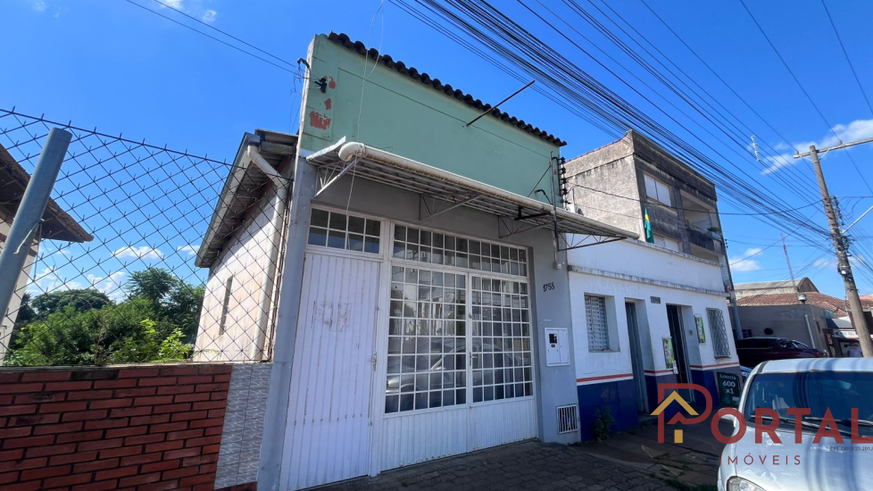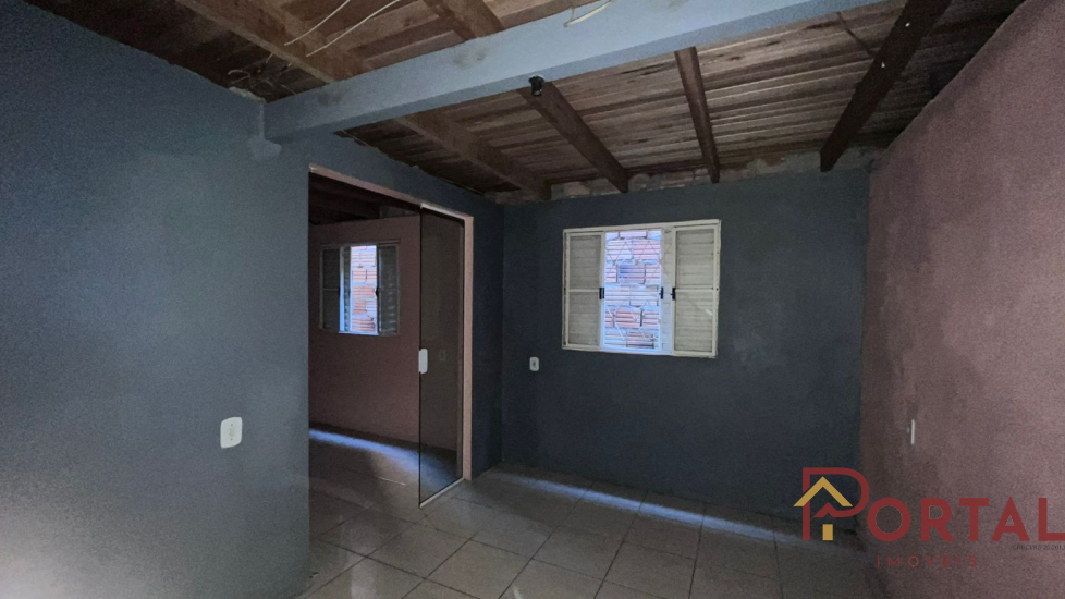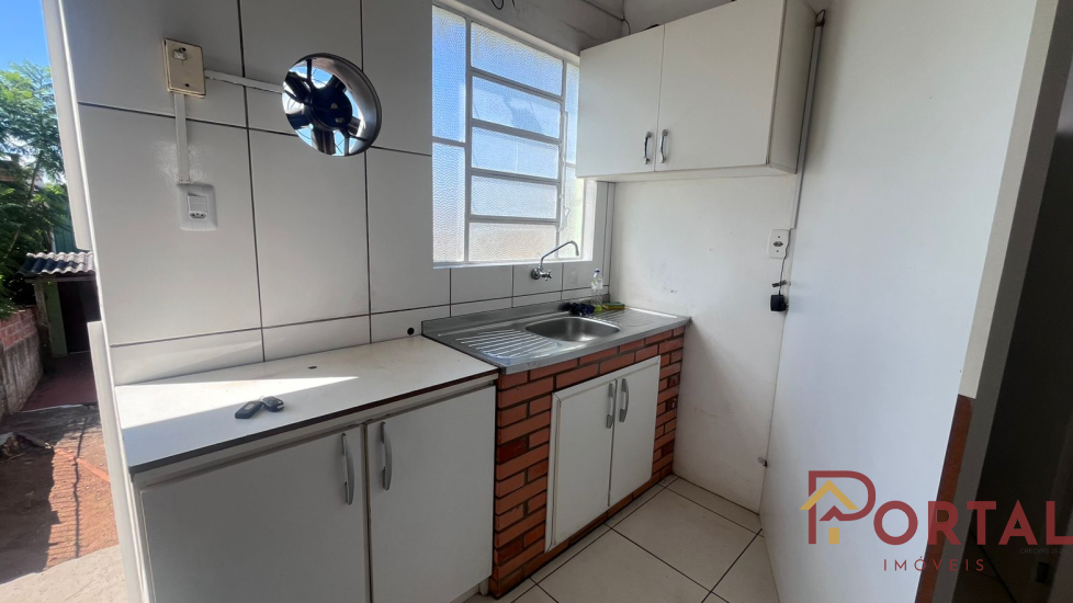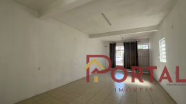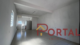 Sala comercial e Casa para locação: Sala comercial com banheiro e cozinha. Na parte de trás: Casa com sala, cozinha, banheiros social, 2 dormitórios, área de serviço e pátio.